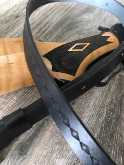 Quality tooled rifle sling in 1- or 1.25-inch width. Tooled with a simple southwestern patterns and finished in your choice of several gorgeous colors; light brown, dark brown, gray, black, antique smoke, antique tan, or antique brown. Made from full-grain 8-9 oz veg-tanned leather. Hand-tooled, hand dyed, and finished with a hand-rubbed protective balm and hand-burnished and waxed edges. Gun metal Chicago screws for length adjustment (33- to 43-inch). This is a cool sling available in several beautiful finishes. Optional Grovtec swivels in black or nickel.